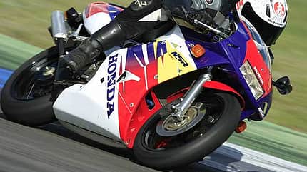 Im Frühjahr 1997 wurde die damals aktuelle NSR, kenntlich an den Farben Violett, Rot, Neongelb und Weiß, auf seinen Namen zugelassen. Fast genau zwölf Jahre später durfte sie erstmals auf die Rennstrecke, und wenn sie dabei nervös war, blieb sie doch immer noch cooler als der MOTORRAD-Tester. Der hatte seit den Zeiten, als er eine Suzuki RGV 250 fuhr, zwar leidlich fleißig mit dem Rennrad trainiert, aber trotzdem ein wenig zugenommen und war in Sorge, ob er sich auf dem kompakten Motorrad mit 1340 Millimeter Radstand würde zusammenfalten können. Eine Kushitani-Kombi mit dem großzügigen Schnitt eines Judoanzugs erwies sich als wertvolle und obendrein stilechte Hilfe. Die Fahrt in Hockenheim währte nur eine Tankfüllung 16 Liter Sprit reichen dort für knapp 150 Kilometer und war ein berauschendes Erlebnis. Wer es nicht selbst erfahren hat, kann nicht glauben, welche Dynamik ein etwa 60 PS starker 250er in einem 161 Kilogramm leichten Fahrzeug entfacht. Denn nicht genug damit, dass der Zweitakter beim Beschleunigen abgeht wie ein Champagnerkorken, er entfaltet auch beim Bremsen und Einlenken besondere Qualitäten. Kein übermäßiges Motorbremsmoment provoziert ein Stempeln oder Schlingern des Hinterrads, alle Konzentration bleibt frei für das, was die Hände kurveneingangs an Lenkreaktionen aufnehmen. Die Folge: Man lässt die kleine Honda in die Ecken laufen, dass einem schwummrig wird. "Das kann nicht gut gehen", denkt man. "Doch", erwidert die NSR. Und wie gut.
