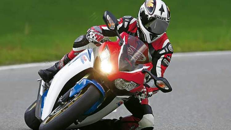 Die R7, für diese Geschichte mit Michelin Pilot Power 2CT in der Dimension 190/55 auf der hinteren Sechs-Zoll-Felge besohlt, ist zumindest auf der Landstraße fahrwerksseitig gleichauf mit dem jüngsten Sproß der R1-Familie. Sie sticht handlich und sehr präzise in flotte Bögen, berichtet mit hoher Exaktheit über den Straßenzustand und lässt in Schräglage sogar noch spielerische Linienkorrekturen zu. Dieses Bike ist zehn Jahre alt? Nie! Einzig die sehr stumpfe Bremse passt nicht ins Bild dieses scharfen Racers.
