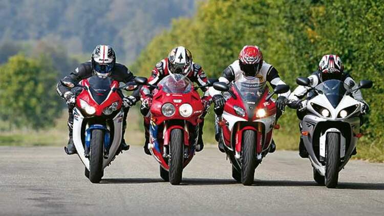 Was können die edlen Homologationsmodelle der Superbike-WM des vorigen Jahrtausends gegen heutige Stangenware ausrichten? PS stellt Honda RVF 750 und Fireblade sowie Yamaha YZF-R7 und YZF-R1 gegeneinander.
