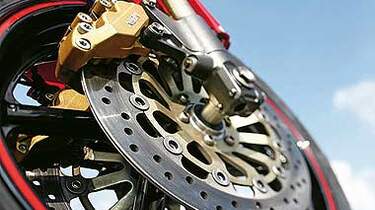Leichtmetall-Gussräder, 3.50 x 16"/6.00 x 17", Reifen vorn: 130/70 ZR 16, hinten: 190/50 ZR 17. Erstbereifung: Dunlop Sportmax II. 310-mm-Doppelscheibenbremse mit Vierkolben-Festsätteln vorn, 220-mm-Einzelscheibe mit Zweikolben-Festsattel hinten