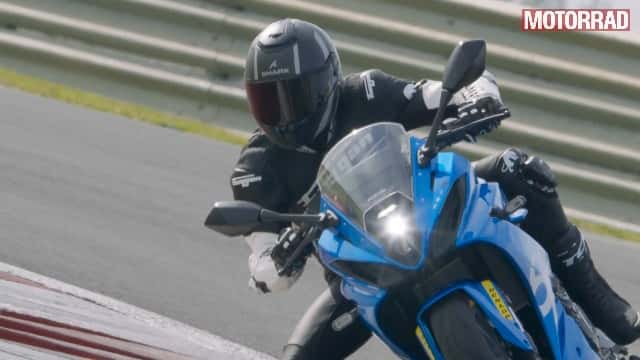 Ein Grund für die gute Führung an der Front liegt wohl bei der R-Variante in der Gewichtsverteilung. Der GSX-8S bescheinigte die MOTORRAD-Waage im Stand 103,3 Kilogramm (ohne Fahrer) Last auf dem Vorderrad. Und laut Suzuki bringt der Fahrer beim R-Modell trotz hoher Stummel noch etwas mehr seines Gewichts auf die Front. Es ergibt sich ein gutes Gefühl fürs Vorderrad. Die sportlich-aufrechte Haltung (mit moderatem Kniewinkel und viel Bewegungsfreiheit im Sattel) passt gut zur kleinen Renn- oder einer verwinkelten Hausstrecke, denn sie schafft viel Spielübersicht. Außerdem findet man im Hanging-off viel Halt am Tank und kann das Motorrad so sicher führen. Die Ergonomie der GSX-8R ist nicht malträtierend-supersportlich und doch fahraktiv genug für den ambitionierten Sportfahrer.