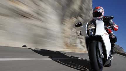 Jetzt also die Österreicher. Sie haben mit der RC8 einen mächtigen Kanten auf die Fünfspeichen-Räder gestellt. Fast schon schroff tritt sie einem gegenüber, ihr Design polarisiert. Und macht trotzdem an. Kühne Ecken, Kanten, Linien, wie mit dem Lineal gezogen. Eigenwillig, dynamisch, anders. Eine klare Ansage an die Konkurrenz, stolz, selbstbewusst: Seht her, wir haben unser eigenes Konzept. Und jede Menge gute Ideen. Das beginnt beim Motor. 75 Grad Zylinderwinkel, kompakt, leicht. Und stark. Der Alpen-Twin drückt. Und wie. Von ganz unten. Unglaublich homogen, gleichmäßig, dabei unnachgiebig, unaufhörlich. Seine Leistung bricht aber nicht überfallartig wie bei einer Ducati 1098 über den Fahrer herein, beim leisesten Dreh am Gasgriff schier explodierend. Vielmehr satt, berechenbar und muskulös. Was auch daran liegt, dass jeder Dreh am Gasgriff die Drosselklappen nicht progressiv, sondern eins zu eins öffnet oder schließt. Nicht mehr, nicht weniger.