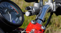 Frau Mahlzahn – zerlegt und geprüft, erträumt und wieder aufgebaut in zwei Wintern – trägt über rotem Fahrgestell das kleine Schwarze, bollert im Leerlauf fröhlich vor sich hin, quittiert Gasstöße mit mutigem Fauchen und macht mit all ihren tollen Details denkbar ungeniert auf Hingucker. Im April 2013 erhielt sie den TÜV-Segen, mittlerweile ist sie längst Eifel-erprobt, denn da ist Torsten konsequent: Sowohl Motorräder als auch Sommer sind zum Fahren da. Ein Mal hat er sein heimisches Revier sogar verlassen und das XS-Treffen im Bergischen Land angesteuert. Seitdem ist er Preisträger. Mit Urkunde für den besten Umbau. Eigentlich braucht Torsten so was nicht. Er genügt sich selbst. Aber er braucht Inspirationen, und er möchte andere inspirieren.