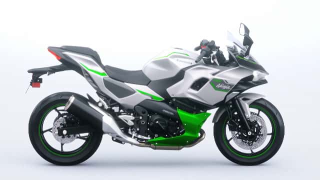 Die hybride Kawasaki schwirrte schon einige Jahre durch das Internet. Mit zahlreichen Patentzeichnungen, Prototypen, Funktionsvideos und Strategieerklärungen hielt Kawa das Thema stets am Köcheln. Auf der EICMA 2022 schürte ein echter Protoptyp die Glut und das Feuer loderte. Wobei: Mit voller Beleuchtung und Kennzeichenträger sah der schon ziemlich serienreif aus. Und ja: Kawasaki kündigte das HEV-Konzept für 2024 an. Im Oktober 2023 stellte Kawasaki das Serienmodell namens Ninja 7 Hybrid offiziell vor.