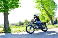 Die liegen in der federleichten Mischung aus Enduro, Straßen- und Trialmaschine, bestückt mit einem 230-cm3-Motor mit 15 PS. Der schafft zwar keinen spektakulären Dakar-Effekt, zieht aber kräftig von unten heraus und sorgt mit seinem sanften Sound für ein entspanntes Verhältnis zu Bauern und Wanderern.
