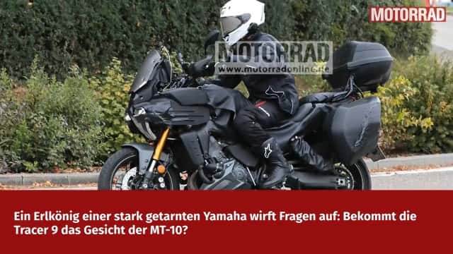 Yamaha tarnt diesen Erlkönig stark, sehr stark sogar. Es gibt keine Fläche oder Form, die nicht verdeckt oder gezielt verunstaltet wurde, beginnend bei der Front mit den wohl leicht nach vorn gesetzten halbhohen Scheinwerfern. Sie sitzen bei der aktuellen Tracer 9 bündig zum zentralen Radaremitter. Beim Erlkönig ist der fast unsichtbar und von Schaumstoff bedeckt. Ebenso komplett umgestaltet zeigt Yamaha die Seitenteile und Kühlerabdeckung. Sie sind im Grunde beim Erlkönig nicht mehr zu erkennen und von "Vesperbrettchen" ersetzt. Darüber erhält Yamaha die 2 Luftkanäle in Richtung Tank, ein Stilelement der aktuellen Tracer 9.