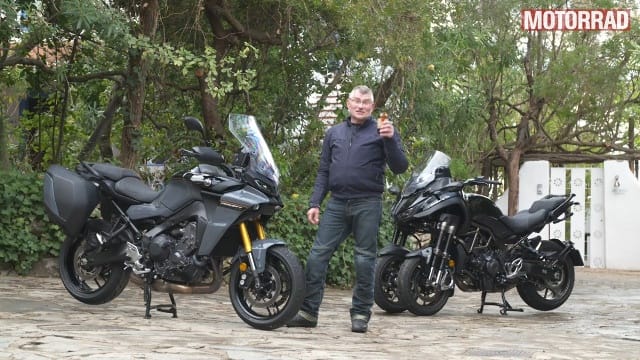 Gigantisch gut fährt die 900er. Kompakt sitzt man auf der langstreckentauglichen, zweigeteilten Komfort-Sitzbank: "Ihre überarbeitete Form und Schaumstoffdichte bieten eine bessere Unterstützung für lange Fahrtage und das lederähnliche Material, die Prägung und die Nähte geben der besseren Funktion noch eine hochwertigere Erscheinung", heißt es dazu in Yamahas Pressetext-Lyrik. Fakt ist: Man hält es prima im höhenverstellbaren Sattel aus – aufrecht und nah am breiten Lenker, hinter der großen, ohne Werkzeug höhenverstellbaren Scheibe. Kleine Fahrer/innen bekommen bei 810 Millimeter Sitzhöhe beide Fußsohlen auf die Erde, lange Kerls stellen den Sitz besser15 Millimeter höher.