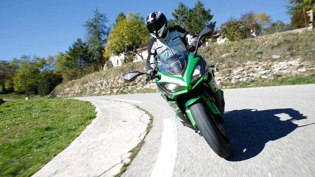 „Ihr werdet eine typische SX-Tour fahren“, hatte Martin Lambert angekündigt, der Pressesprecher von Kawasaki Europa. Es spricht für die Qualitäten der Kawasaki Z 1000 SX, dass es keine leichte Tour wurde. Quer durch den dichten Ferienhausgürtel an der Cote d’Azur ging es hinauf ins Kurvenparadies der provenzalischen Voralpen, bei Temperaturen, die sich morgens nur knapp über dem Gefrierpunkt hielten. Nasse Straßen auf den schattigen Nordseiten der Berge, dann wieder sonnenbeschienene Genusskurven, Holperstrecken, Gourmet-Asphalt und alles in schneller Folge – es war eine lange, anspruchsvolle und schöne Route. Für den ersten starken Eindruck sorgte der Motor. Fit gemacht für Euro 4 wurde er vor allem durch zwei größere Katalysatoren, die seine Charakteristik nicht beeinträchtigen. Sie haben weder dem wuchtigen Durchzug des 1.043ers erkennbar geschadet noch seiner Leistungsfähigkeit bei hohen Drehzahlen. Nach wie vor darf die Drehzahl im Scheitelpunkt enger Kehren auch einmal unter 3.000/min fallen; dann zieht der Vierzylinder zwar etwas knurrig, aber dennoch kräftig wieder an.