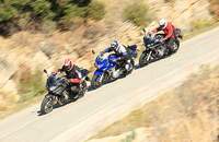 Ausgewogen das Zauberwort, mit dem die Honda hier glänzt. Zwar bietet sie fahrwerksseitig nicht den Komfort der Konkurrenz, doch ihr Handling, ihre Neutralität und ihre Lenkeigenschaften sind einfach herausragend. Nur wers ganz arg knallen lässt, den mahnen aufsetzende Fußrasten zu gemäßigteren Gangart. Ärgerlich: Sowohl das Federbein der Suzuki als auch das der Honda sprechen schlecht auf kurze, harte Schläge an. Im Soziusbetrieb bietet das CBF-Fahrwerk die meisten Reserven, und die Yamaha setzt bei Beladung mit dem Mittelständer auf. Der Fahrer der Suzuki muss in Kurven gegen das Eigenlenkverhalten der Bereifung arbeiten.