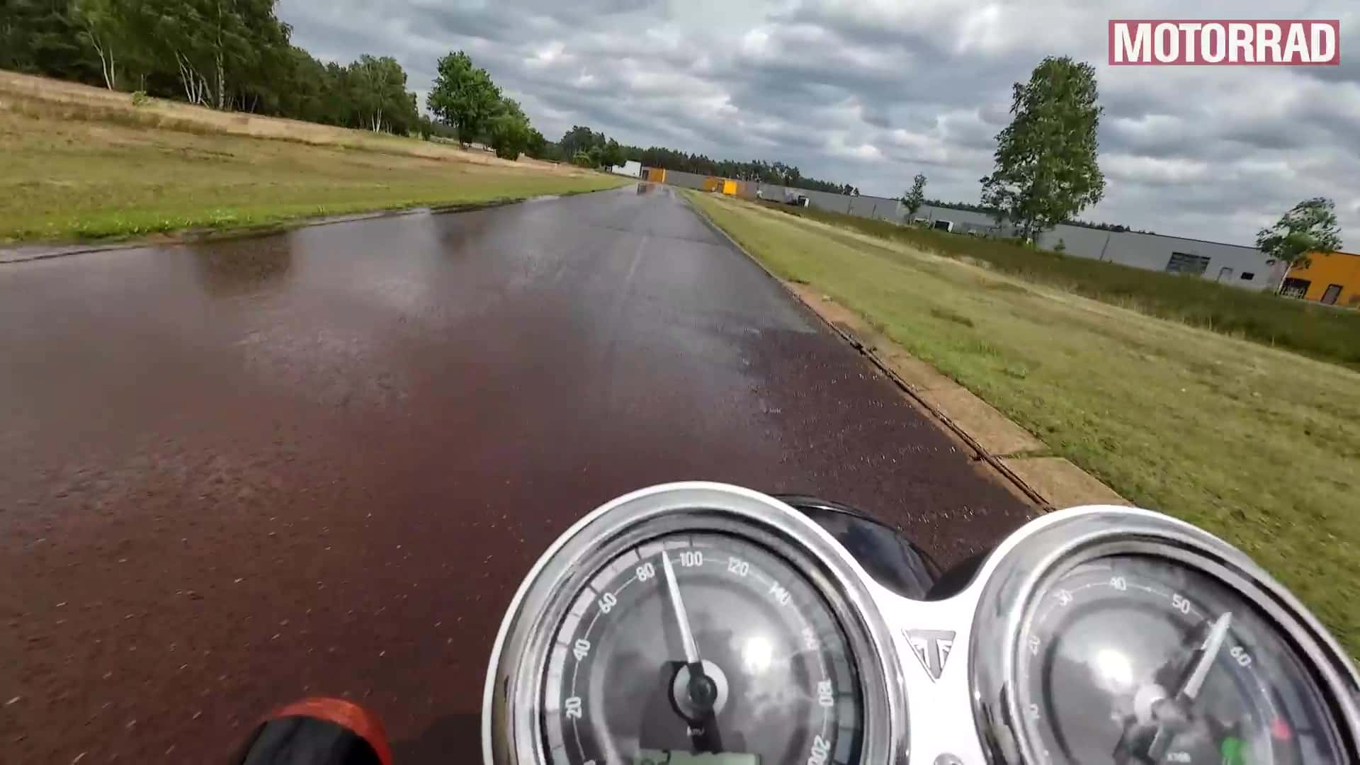 - Nasstest (70 Punkte/befriedigend): Der Mitas liefert insgesamt nur eine befriedigende Rückmeldung für die Haftung bei nasser Fahrbahn. Trotz der geringen Motorleistung der Kawasaki traten mehrfach spontan Rutscher am Hinterrad auf. Die Rückmeldung des Vorderreifens ist grundsätzlich okay, bleibt jedoch blass. Insbesondere vorn fehlt es spürbar an Gefühl.