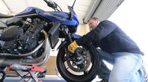 Nachdem beim Reifentest im letzten Jahr mit der Triumph Street Triple ein vergleichsweise leichtes, extrem handliches Motorrad als Versuchsträger für unsere Testreifen diente, fiel die Wahl in diesem Jahr auf einen klassischen Kandidaten für Tourenreifen. Suzukis Bandit 1250, von Haus aus eher träge, kann durch eine Umbereifung auf diese Reifengattung durchaus an Dynamik gewinnen. Bleibt nur die Frage, in welchem Umfang das gewünscht ist. Dies ist stark davon abhängig, welche Präferenzen der Fahrer setzt beziehungsweise wie es um seine alltäglichen Fahrgewohnheiten bestellt ist.
